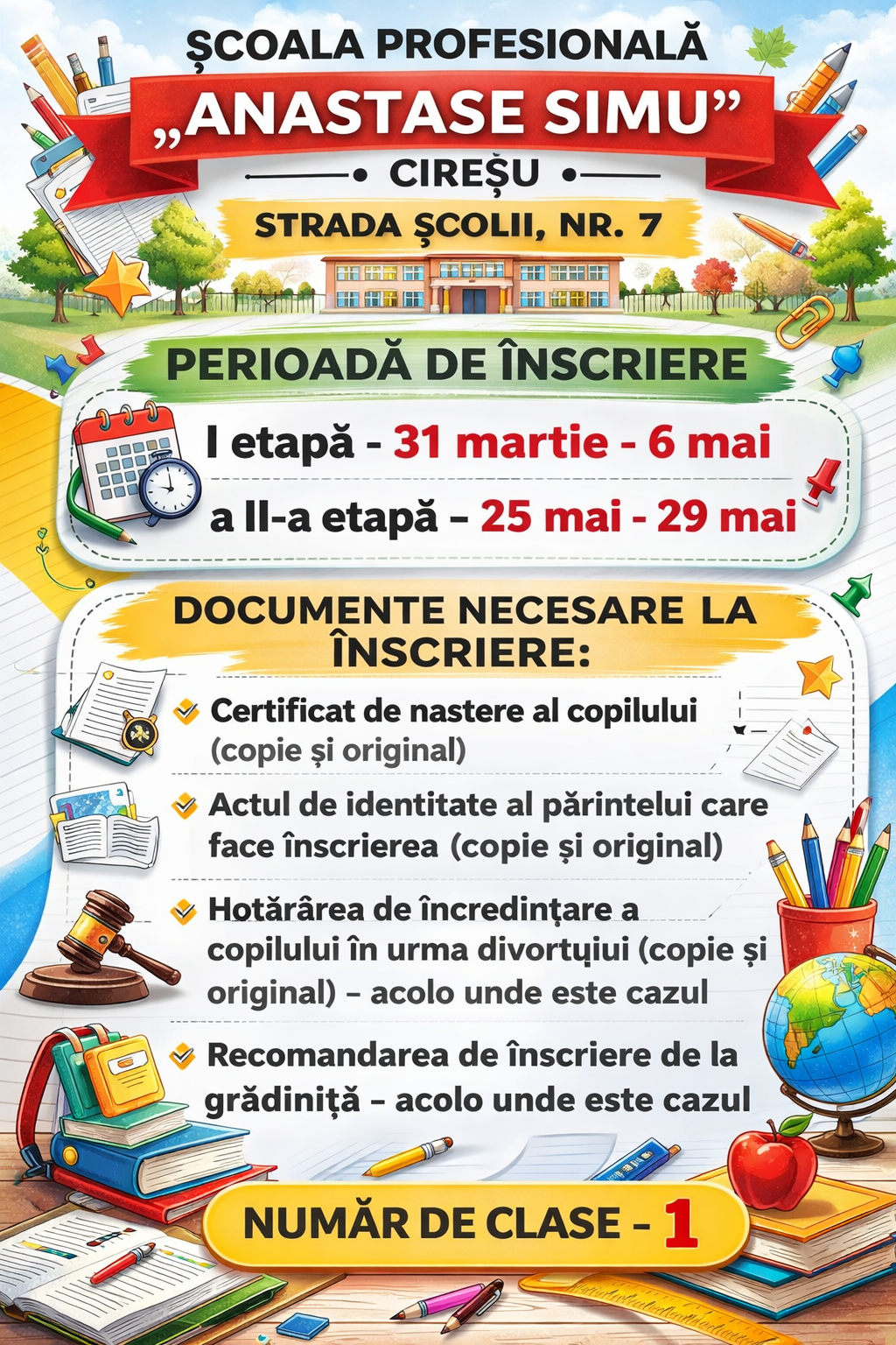 • Înscriere Clasa Pregătitoare